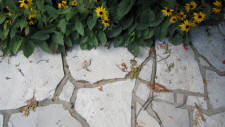 #2- These pictures of a mortared patio were taken about two years after it was built.They show two different colours of stone that come from the Owen Sound area. The paler stones, called buff, have faded alot since they were installed. The others ,called black, are still quite dark. Five years later, the black will have also faded significantly.